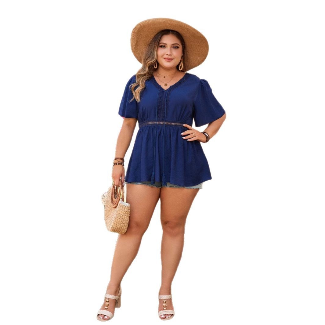 Casual V-Neck Short Sleeve Tops for Plus Size Women
