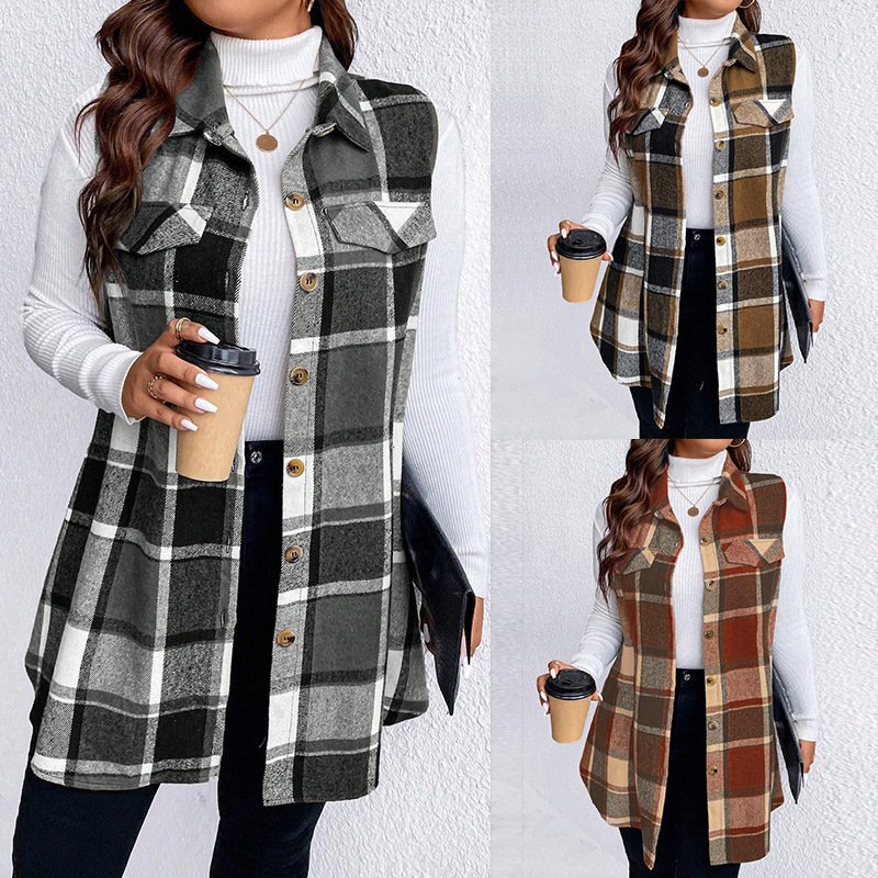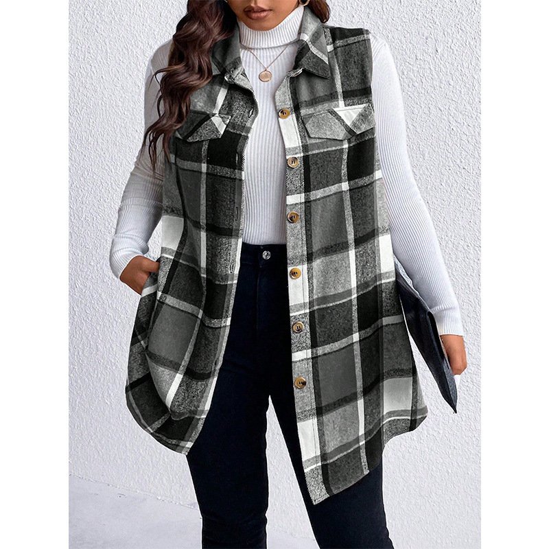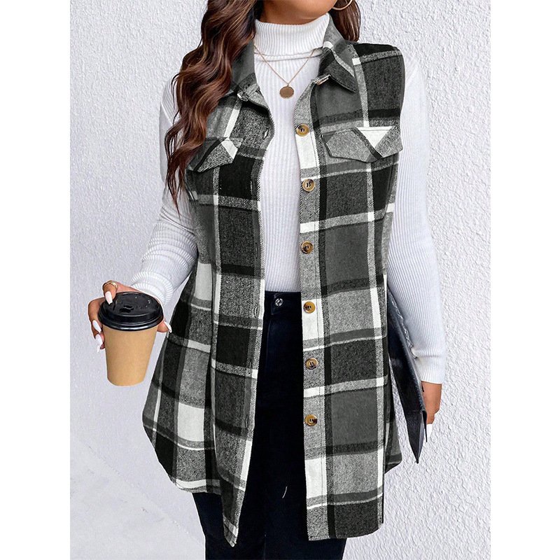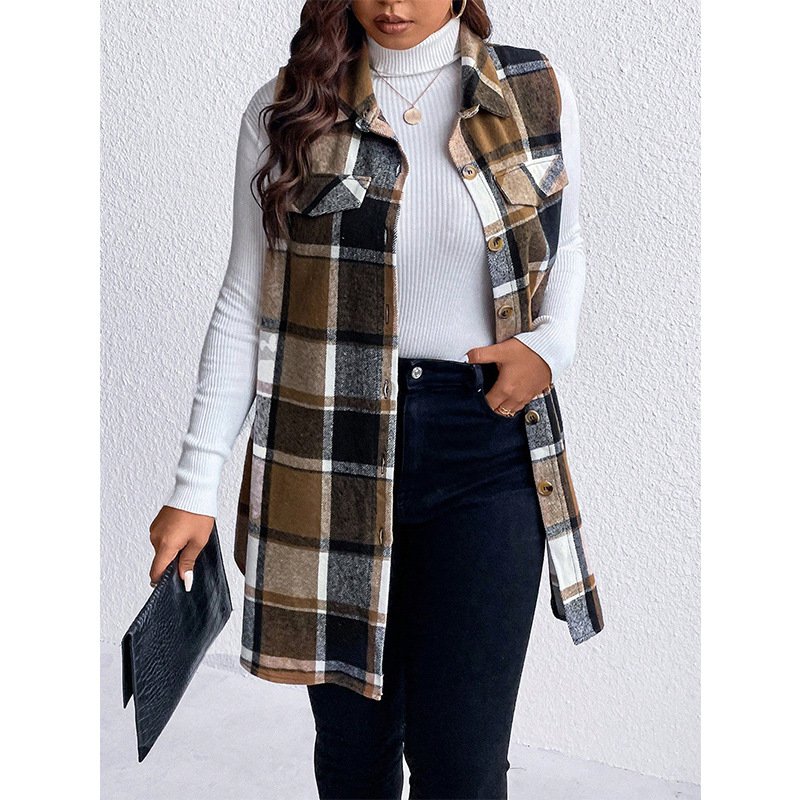 Checkered Sleeveless Vest Casual Loose Women’s Coat