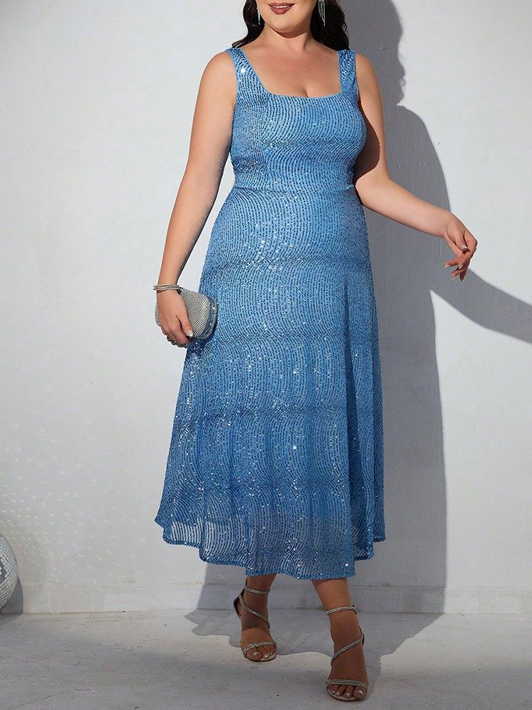 This stunning sleeveless maxi dress is perfect for making a statement at parties and special occasions. The dress features a chic U-neck design and is adorned with sequins for a touch of glamour.