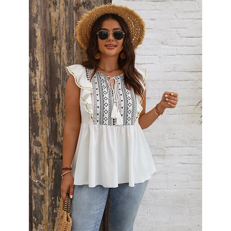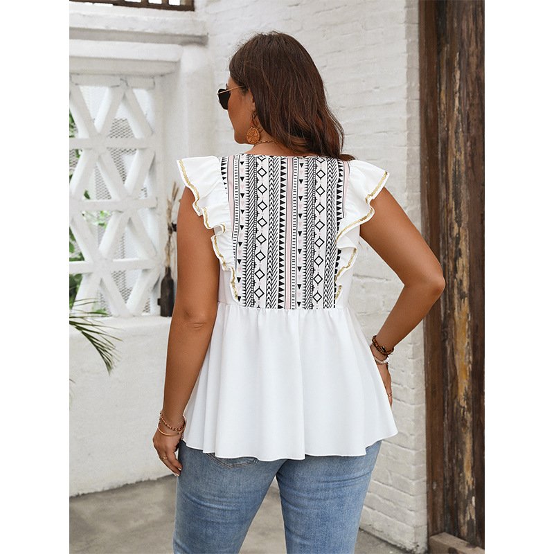 Upgrade your wardrobe with this stylish loose-fit top featuring a trendy ruffled hem. Made from high-quality polyester, this shirt offers comfort and breathability for all-day wear. The simple white design makes it versatile for various occasions, from casual outings to professional settings.