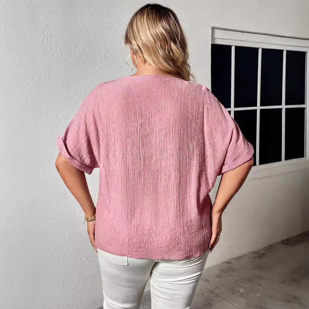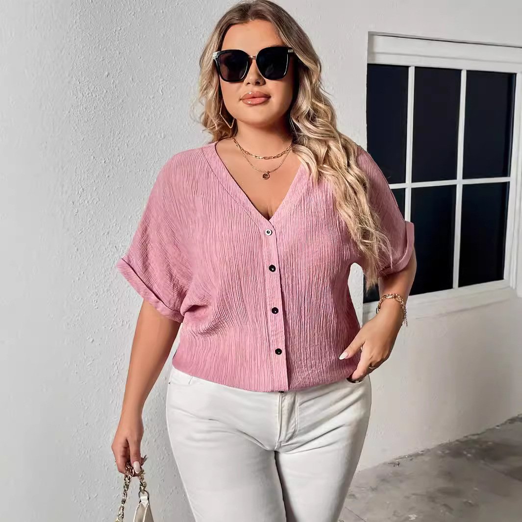 Be the first to review “Loose-Fit V-Neck Button Short Sleeve Shirt for Women”