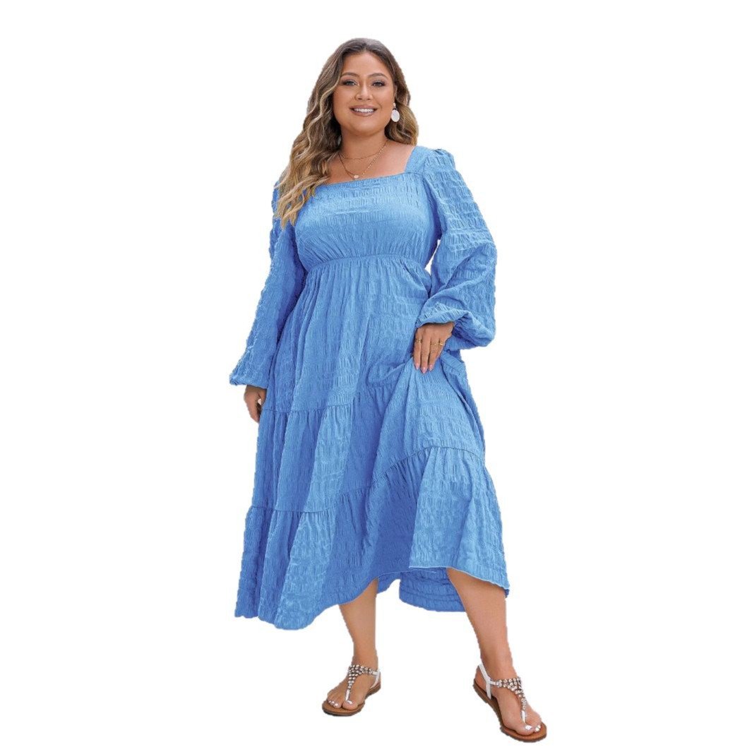 This elegant plus size dress features a flattering square neckline and long bell sleeves, perfect for any casual occasion. Made with high-quality polyester, it is both comfortable and stylish. The slip-on design offers convenience, while the lightweight fabric is breathable for all-day wear.