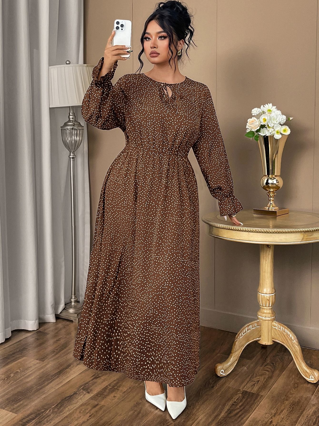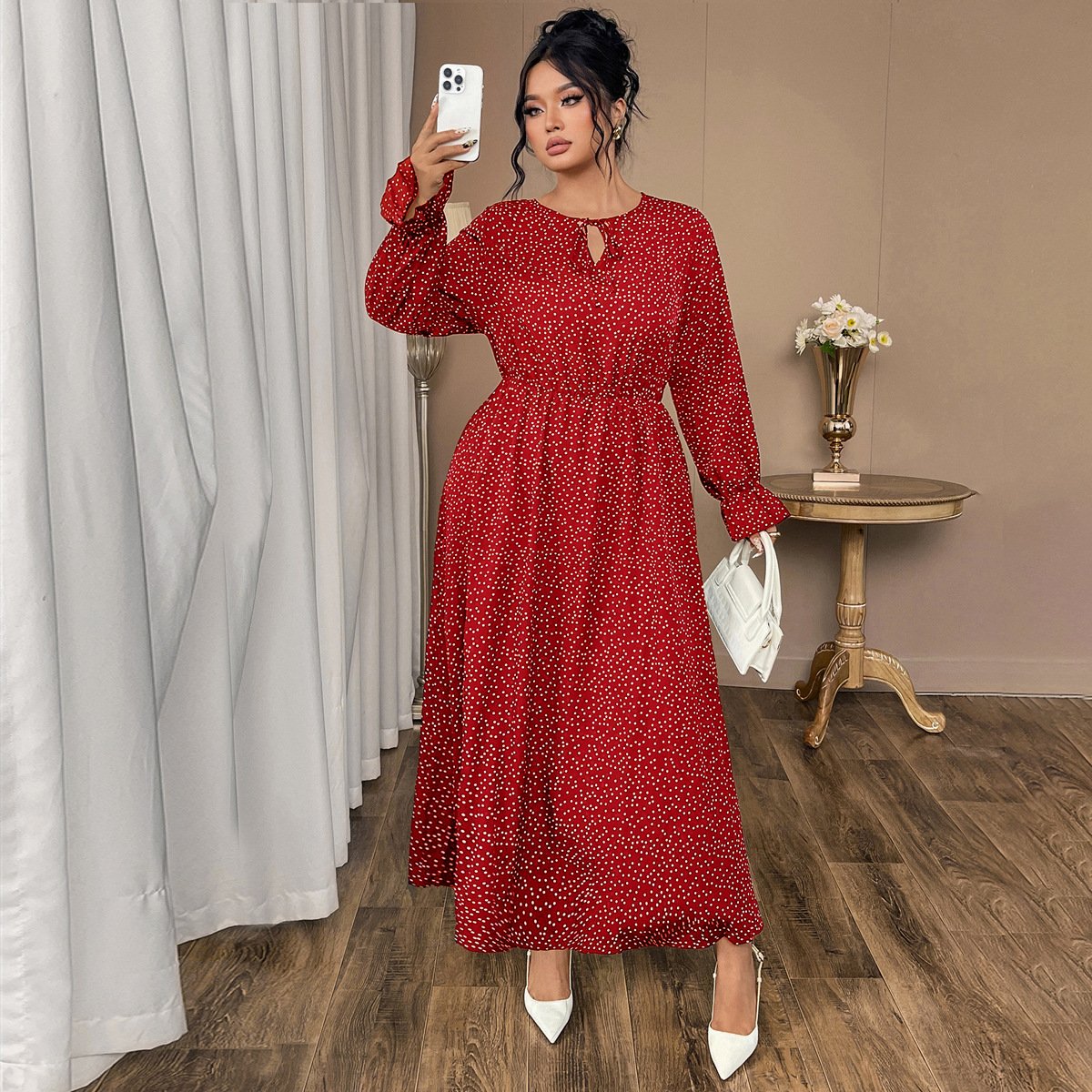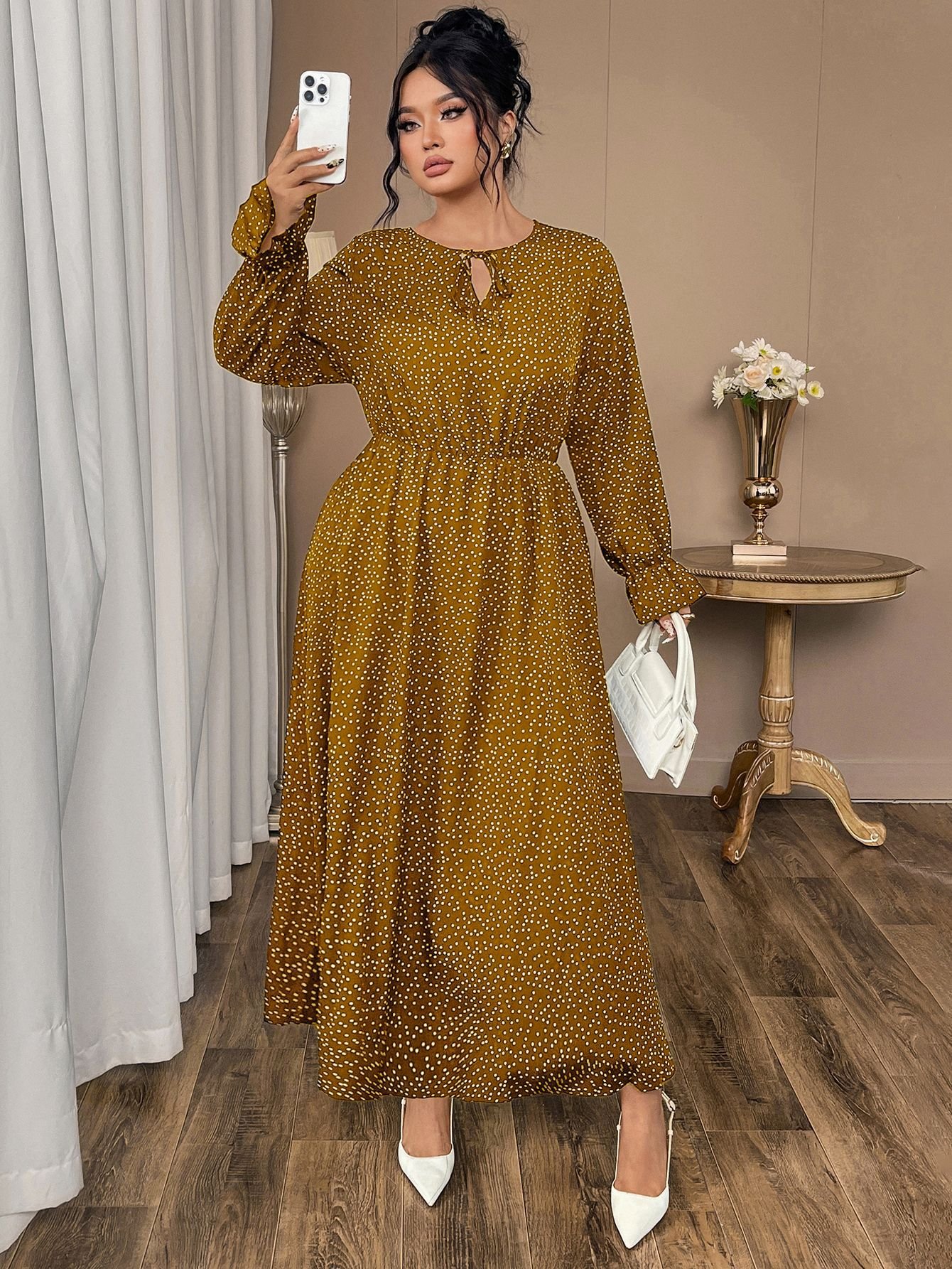 Be the first to review “Plus Size Polka Dot Chiffon Dress with Flared Sleeves”