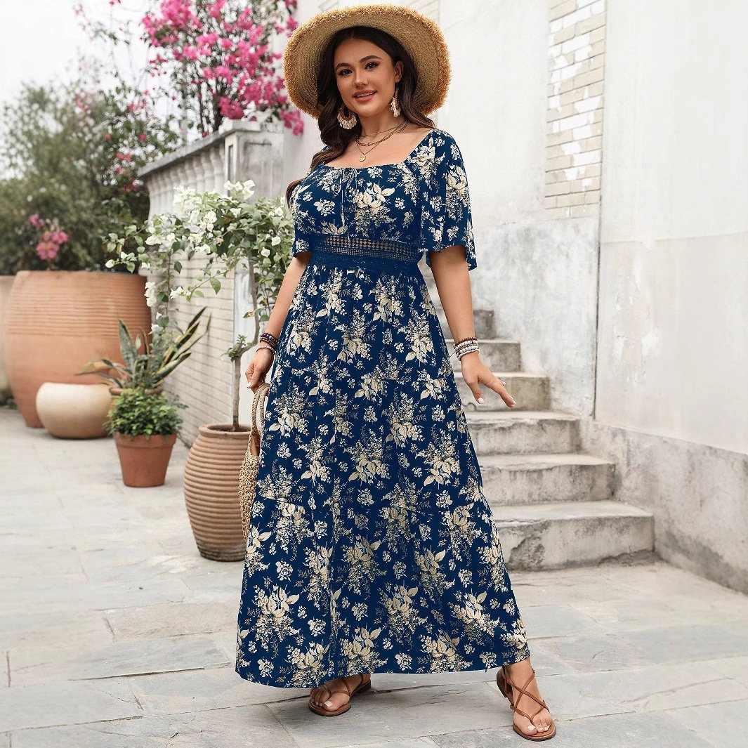 This stylish retro A-line dress features a beautiful floral print, perfect for a variety of occasions. Made from high-quality polyester, it offers comfort and breathability for all-day wear. The square neckline gives it a trendy touch, while the short sleeves provide a relaxed and easy fit.
