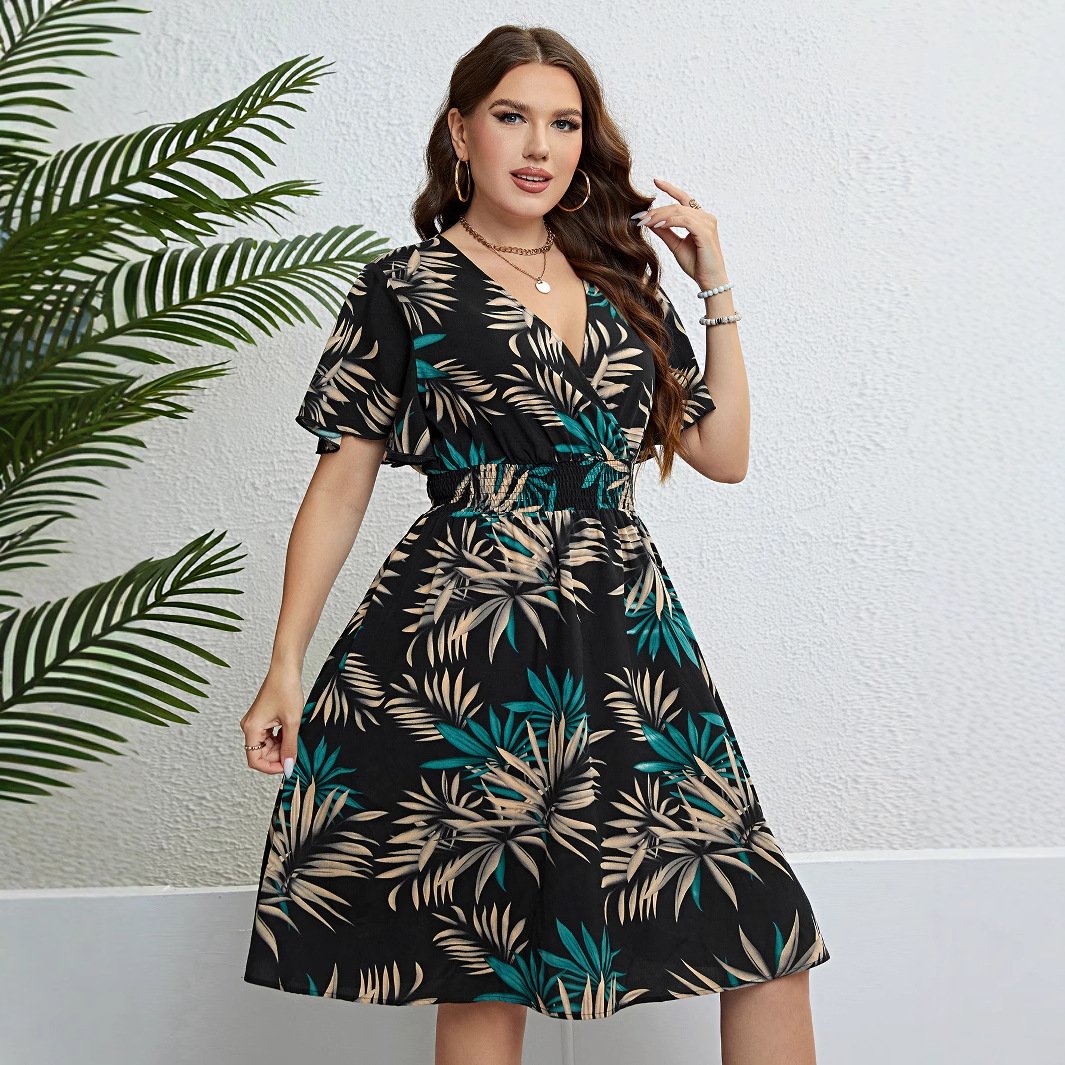 This stylish summer dress features a flattering V-neckline and is designed to enhance your figure. The lightweight polyester fabric ensures comfort, while the floral print adds a touch of elegance. Perfect for casual outings, beachwear, or summer parties. Available in multiple colors and sizes for a versatile wardrobe staple.
