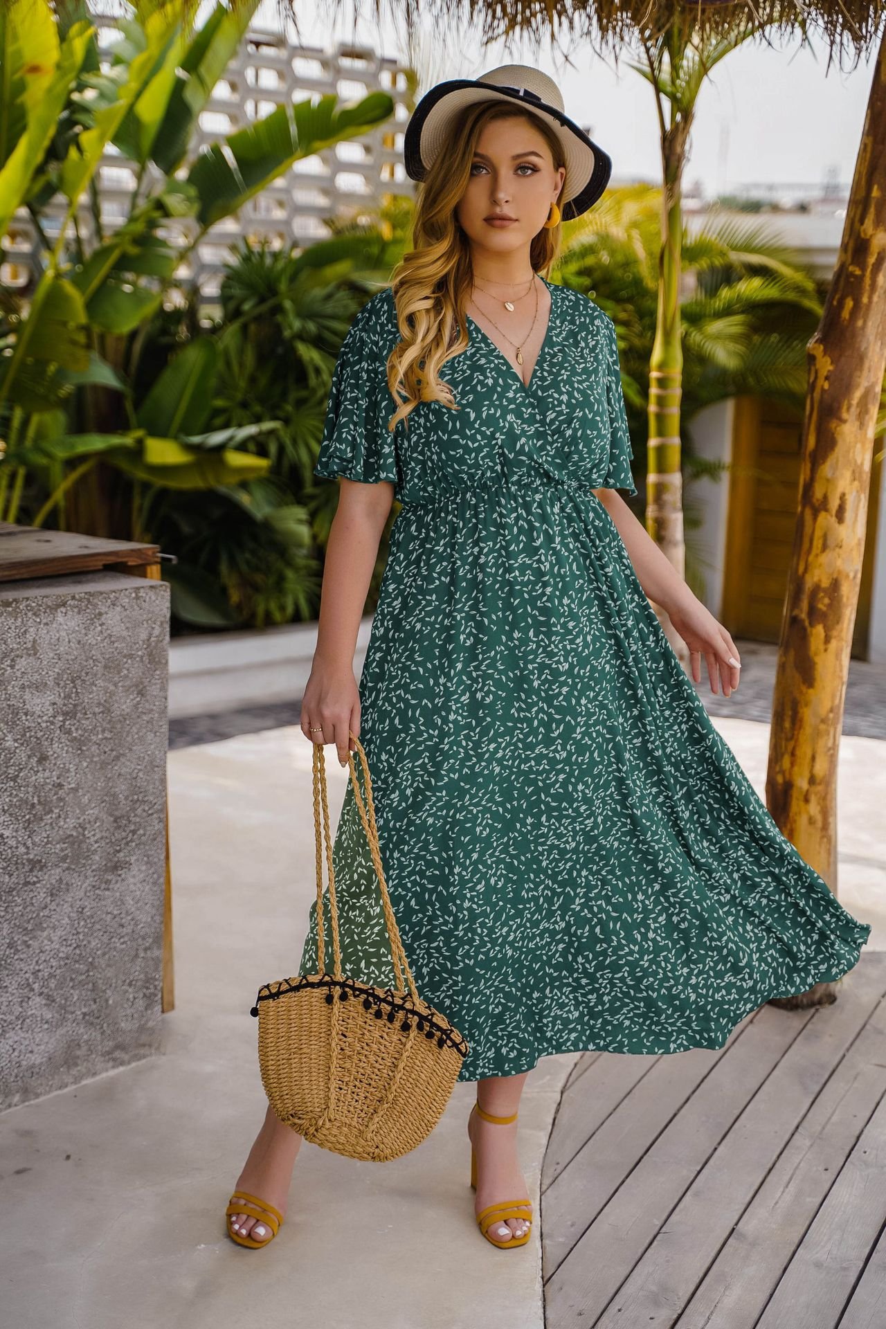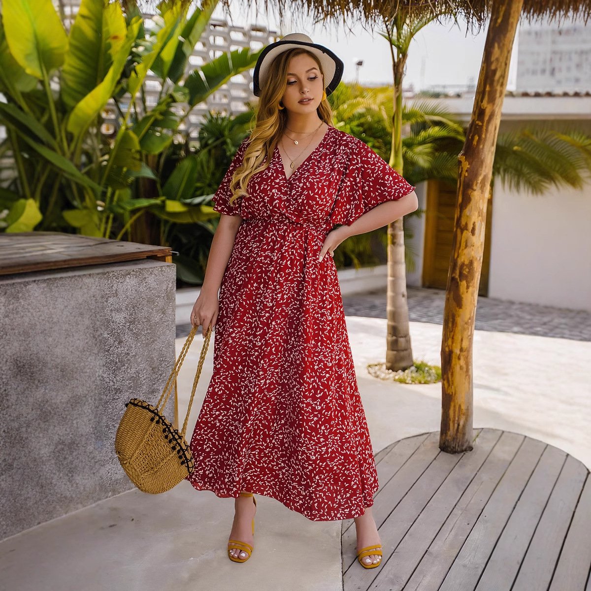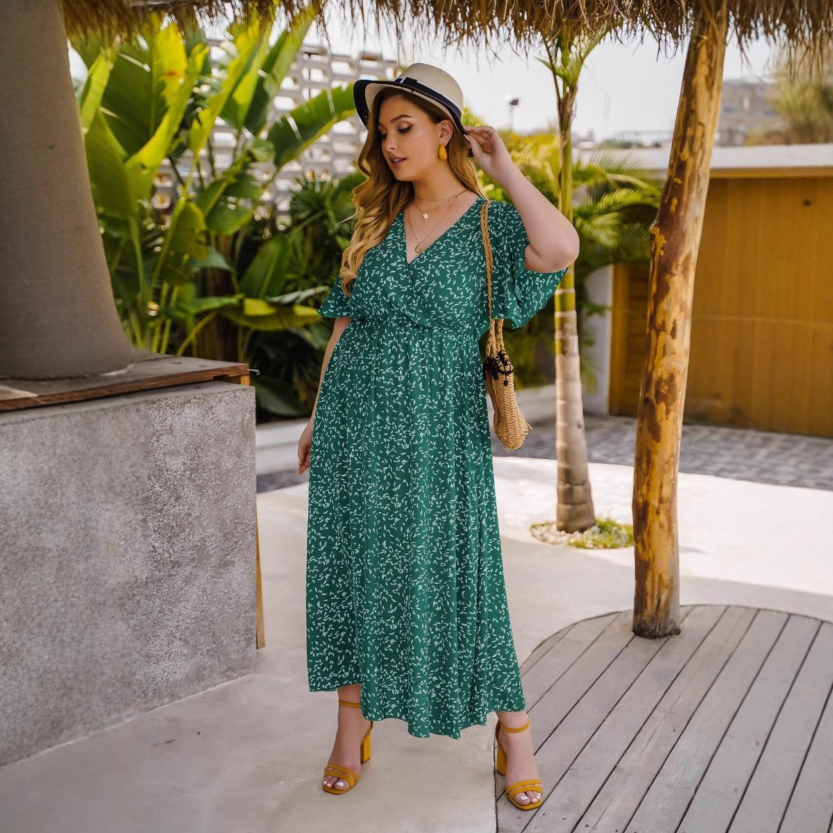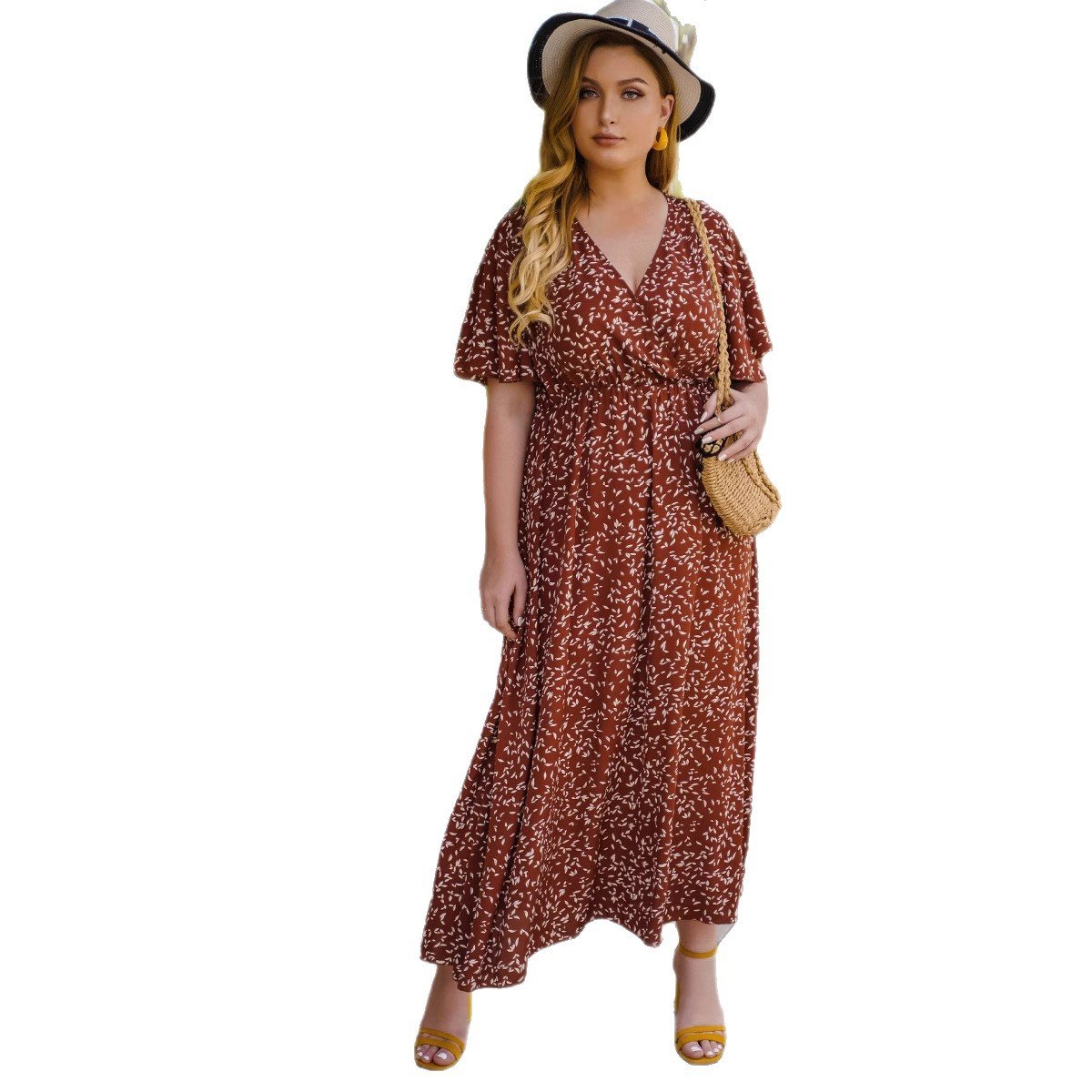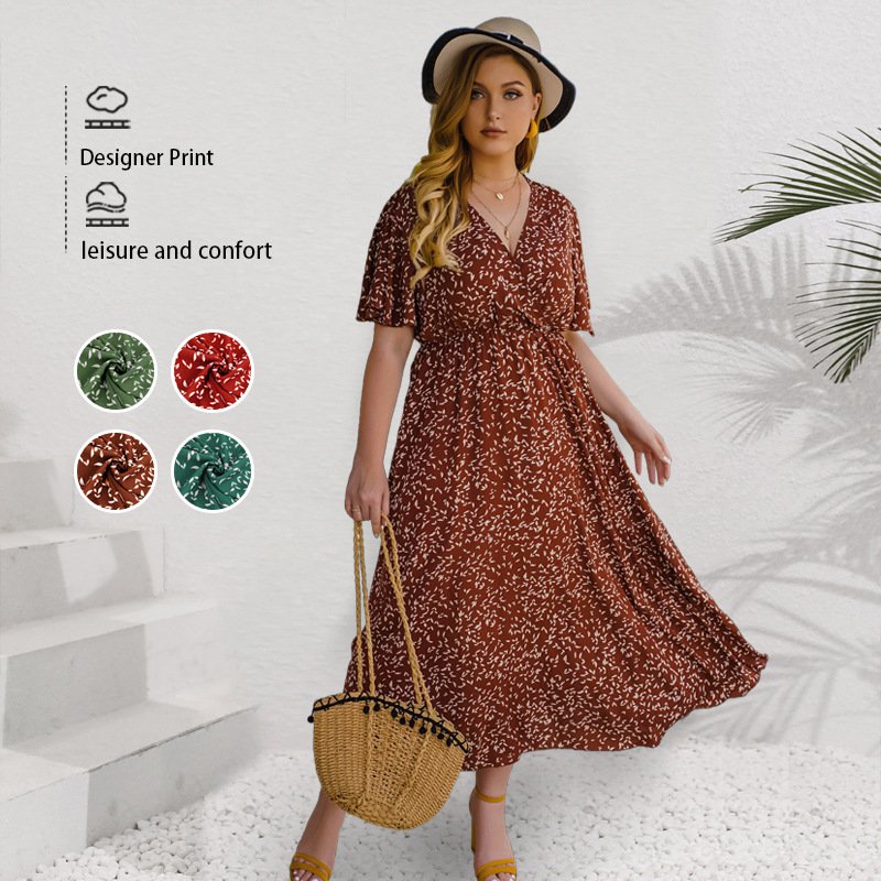 Stylish and comfortable, this high-waist maxi dress is perfect for any occasion. Made from lightweight polyester, it offers breathability and ease of movement. The classic V-neck and short sleeves make it a versatile choice for summer outings, while the elegant silhouette provides a flattering fit for plus sizes.