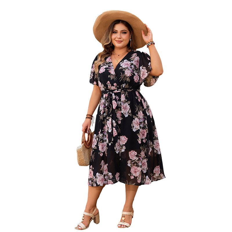This elegant floral maxi dress is perfect for any occasion. The dress features a V-neckline, short shirt sleeves, and a flattering fit that cinches at the waist. Made from high-quality polyester, this dress is lightweight and breathable, making it comfortable to wear throughout the day.