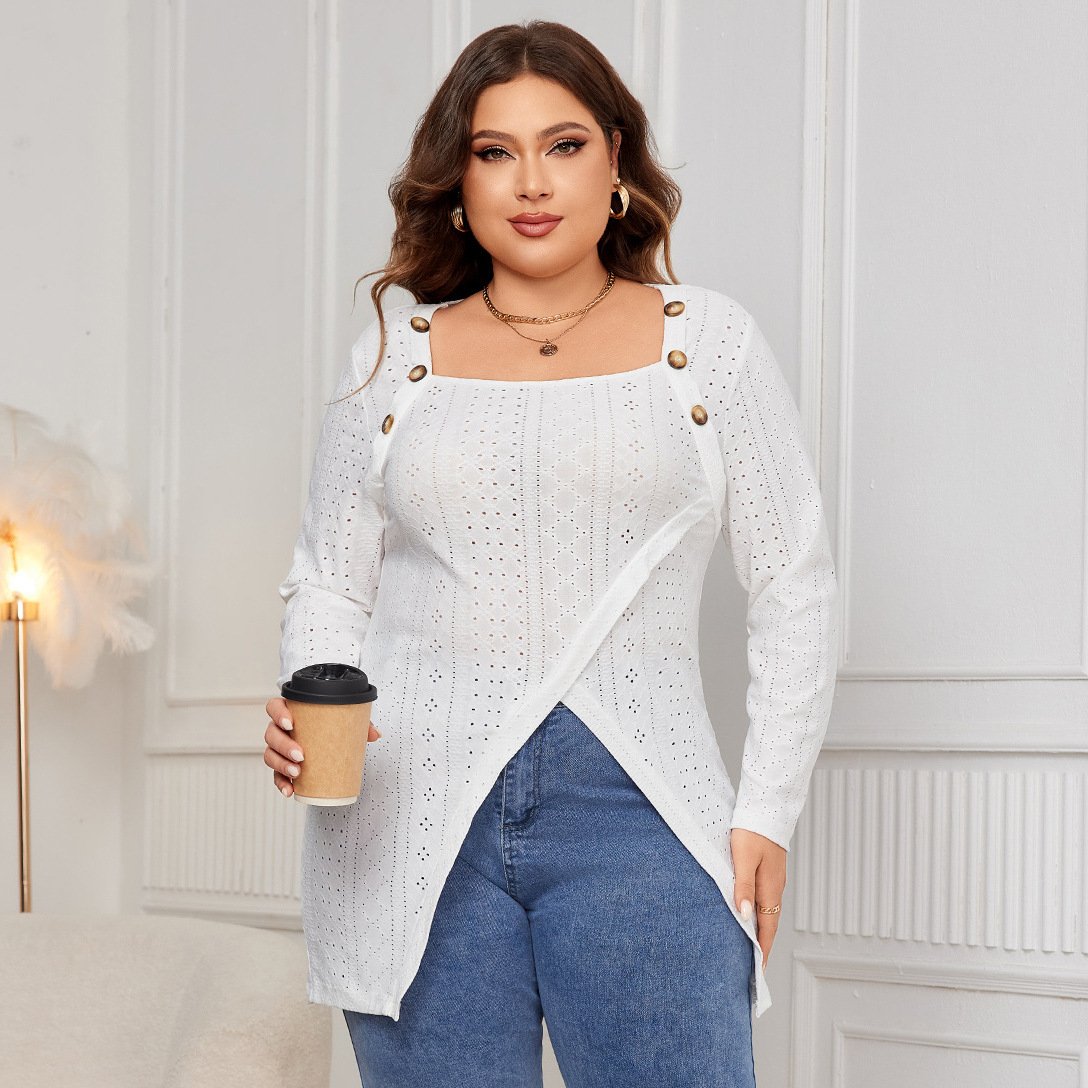 This stylish white blouse features a square neck design, long sleeves, and a loose fit that flatters a variety of body types. Made from high-quality polyester, this top is perfect for comfortable and chic everyday wear.